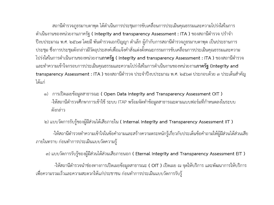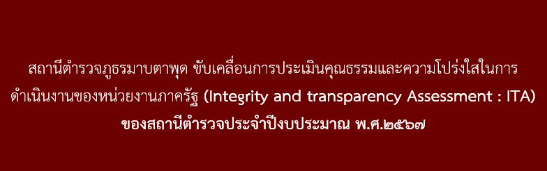 ขอเชิญชวนผู้มารับบริการ/มาติดต่อ สถานีตำรวจร่วมจัดทำแบบการรับรู้ของผู้มีส่วนได้ส่วนเสียภายนอก (External Integrity and Transparency Assessment : EIT) 2024 สำหรับนำไปพัฒนาปรับปรุงการให้บริการของสถานีตำรวจ